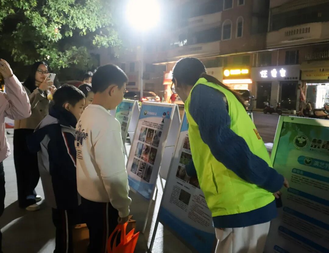 “活动现场的氛围很热闹,我听了很多工作人员的普法,还玩了一些小游戏,很开心,让我学到了交通安全、反诈、毒品安全等知识。”周同学刚下校车,就被普法夜市吸引过来,从宣传人员深入浅出地讲解中感悟法治精神。
