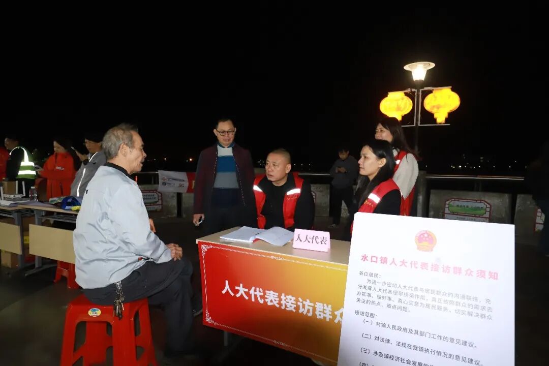 普法夜市,不仅是宣传台,更是服务站。水口镇还组织了市、镇村(社区)三级人大代表集中出摊,面对面倾听群众意见建议,着力解决大家急难愁盼问题。