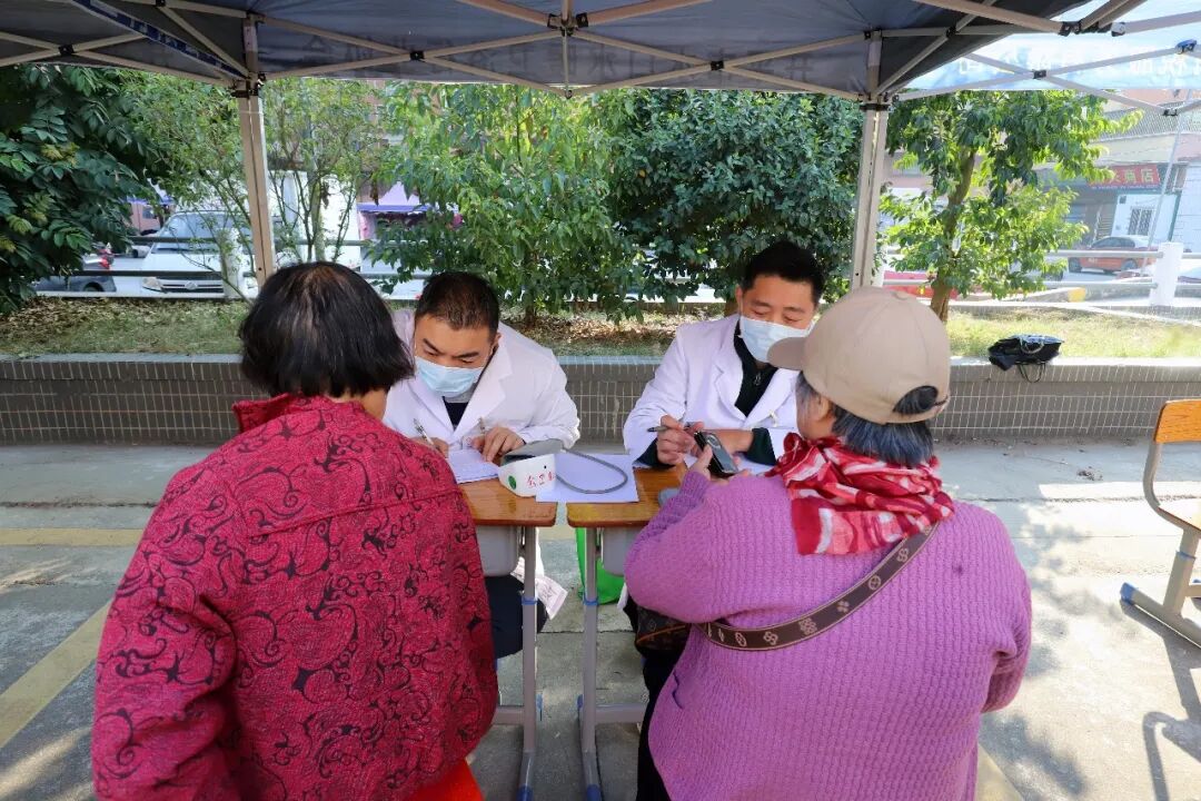 义诊摊位前,专家们细致为村民诊断病情,解读体检报告,并提供测量血压、血糖等服务。