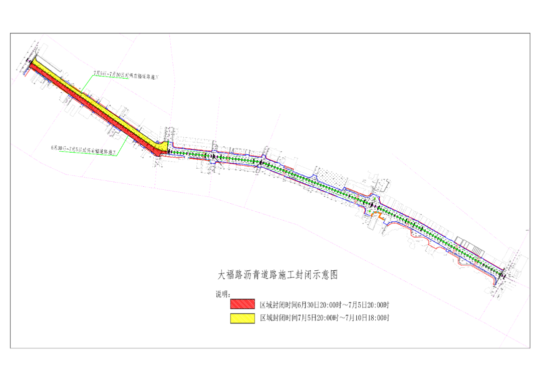 水口镇大福路改造工程(325国道至水口镇政府段)沥青铺设工序将于2023年6月30日20时进场。作业期间,大福路部分路段需封闭施工(详见示意图),请过往车辆按施工现场指示标志或施工工作人员指挥,提前绕道。不便之处,敬请谅解。