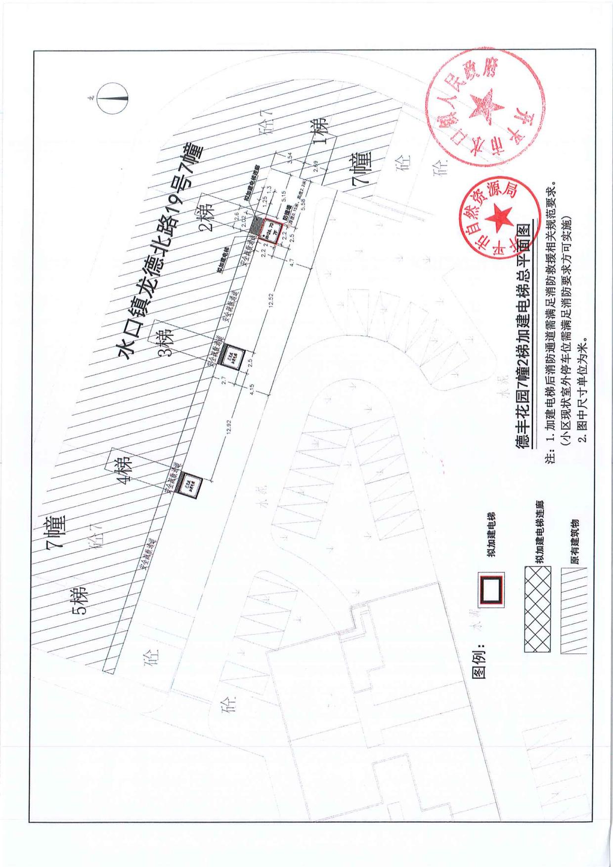 水口镇龙德北路19号7幢2梯申请加建电梯,加建电梯的具体位置和尺寸详见附图。