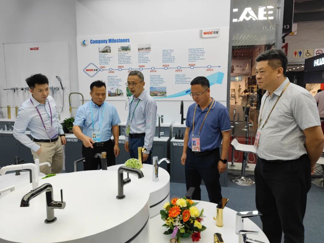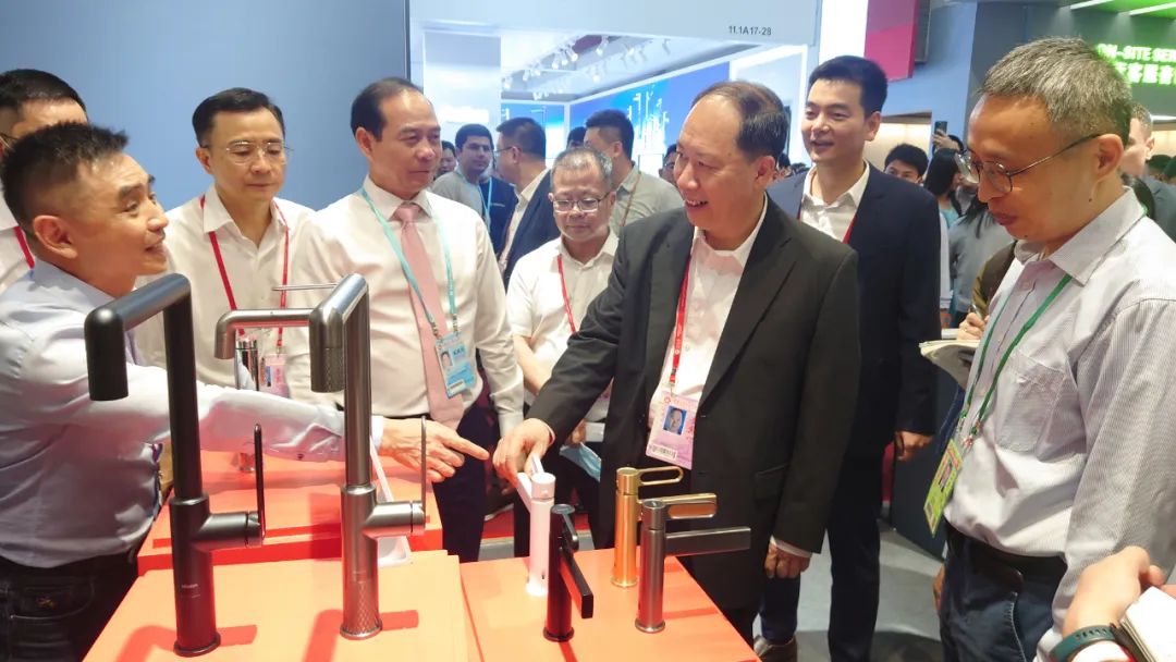 海棠直播 委书记余中华,市委副书记、市长陈小曼分别走访希恩卫浴、彩洲卫浴、美迪晨卫浴、汉玛克卫浴等水口参展企业,表示要把握机遇、用好平台,牢牢抓住创新和质量这两个关键,不断推动企业做强做优做大。海棠直播 领导许永锋、刘剑锋参加活动。