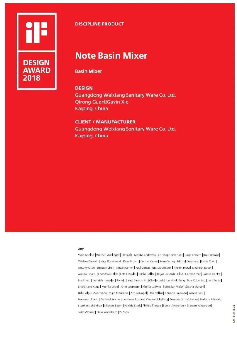 伟祥卫浴致力于打造具有前瞻性、设计感、实用性的卫浴产品,为消费者带来个性与实用相结合的卫浴产品。深耕行业十余载,伟祥卫浴已获得近一百项国家专利认证。伟祥卫浴自主研发的“MUSE”卫浴原创系列产品——“面盆龙头1W100100CP”“淋浴龙头1L137000CP”“浴缸淋浴龙头1L136900CP”分别斩获“德国红点设计奖”及“IF国际设计奖”双料奖项。