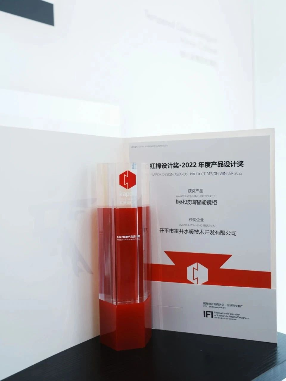 自主研发的智能感应卫浴产品,智能浴室镜柜等产品连续多年荣获红棉中国设计奖。