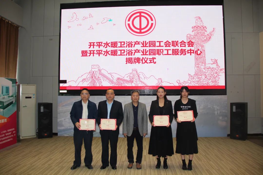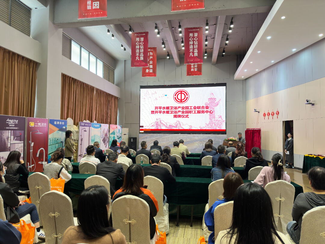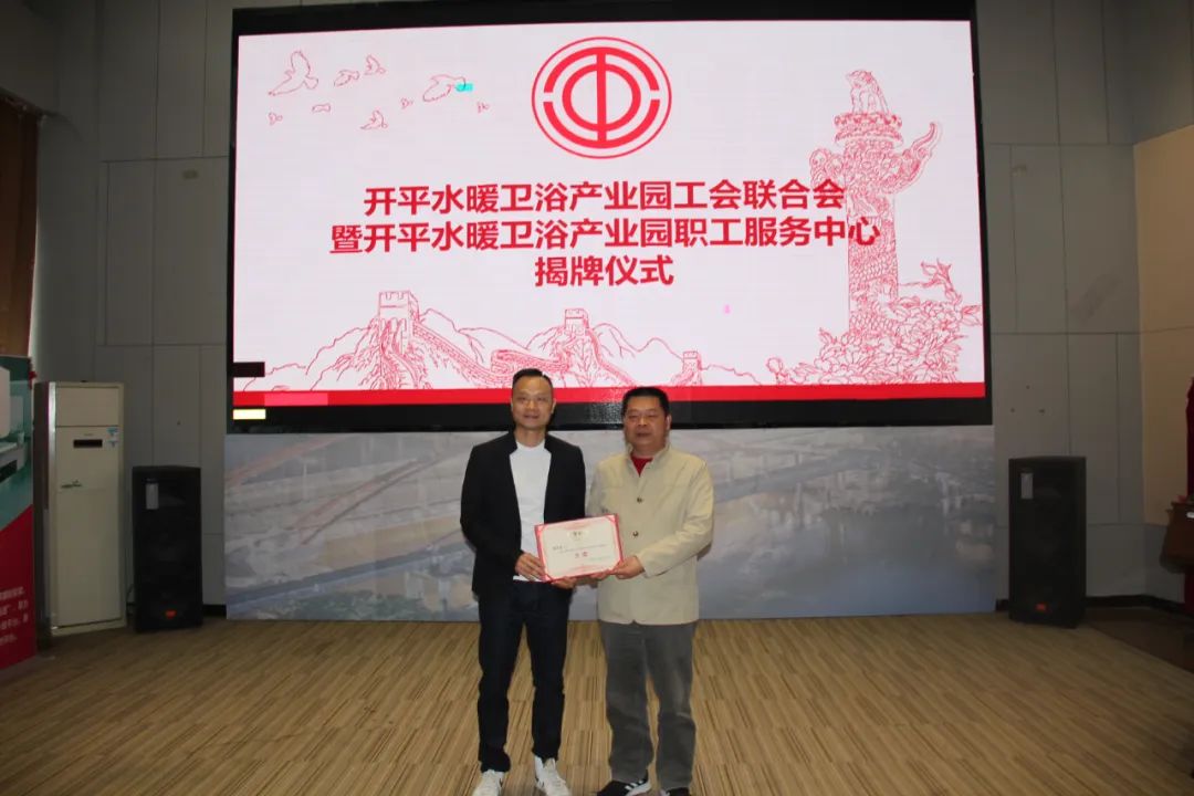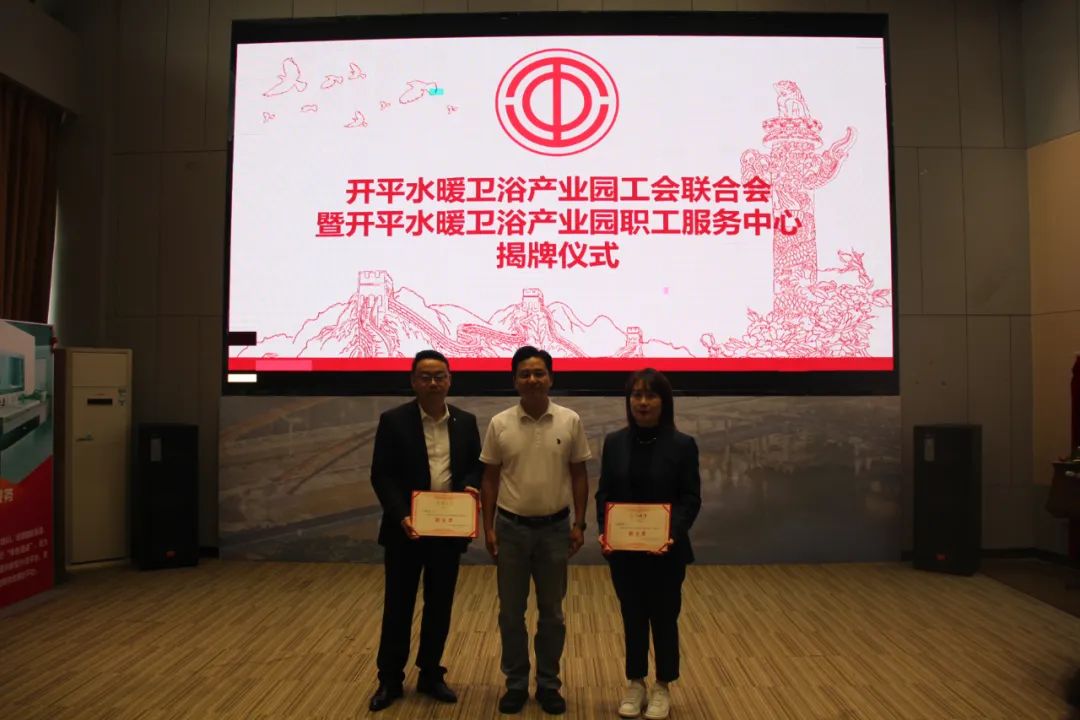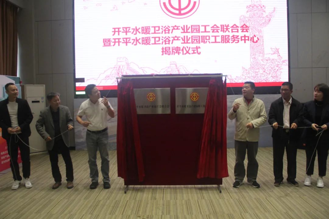 1月18日上午,开平水暖卫浴产业园工会联合会暨开平水暖卫浴产业园职工服务中心在纳成广泰揭牌成立,标志着工联会正式成立和职工服务中心正式落成,全市广大水暖卫浴行业职工朋友拥有了自己的“娘家”。