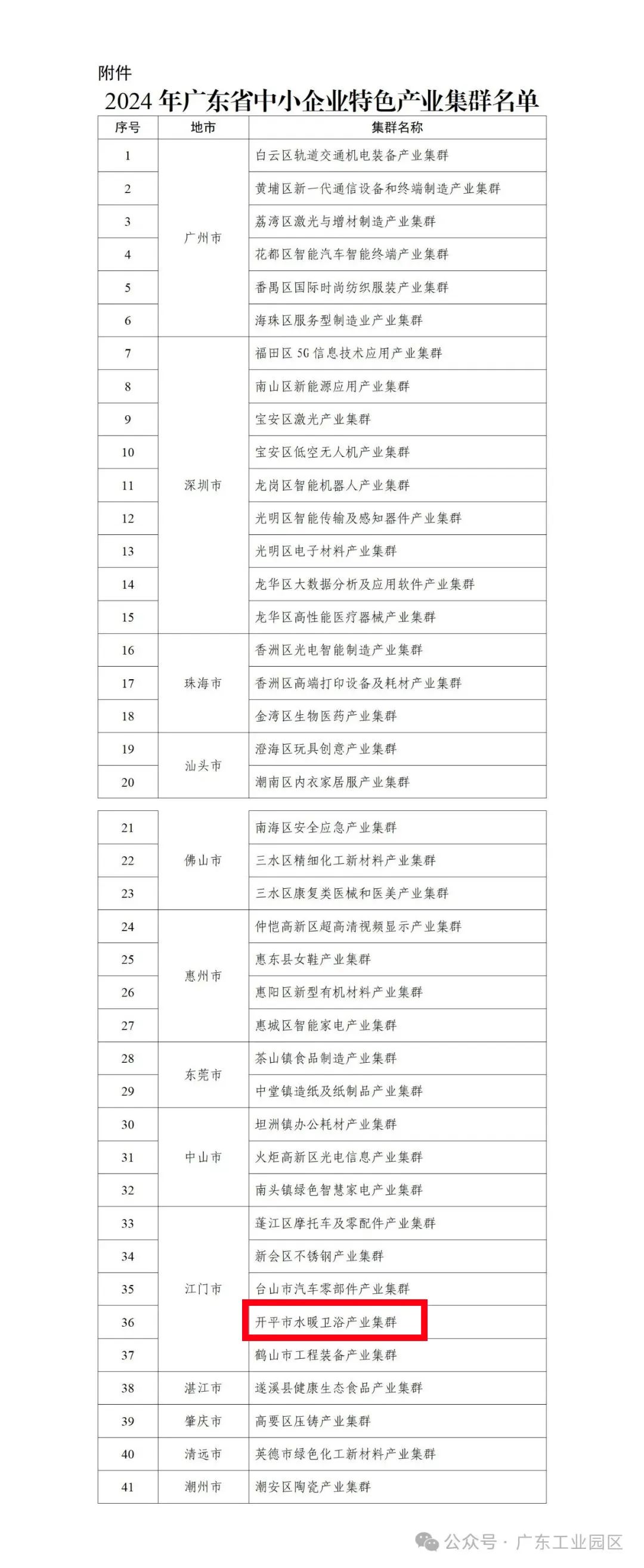 附件:2024年广东省中小企业特色产业集群名单
