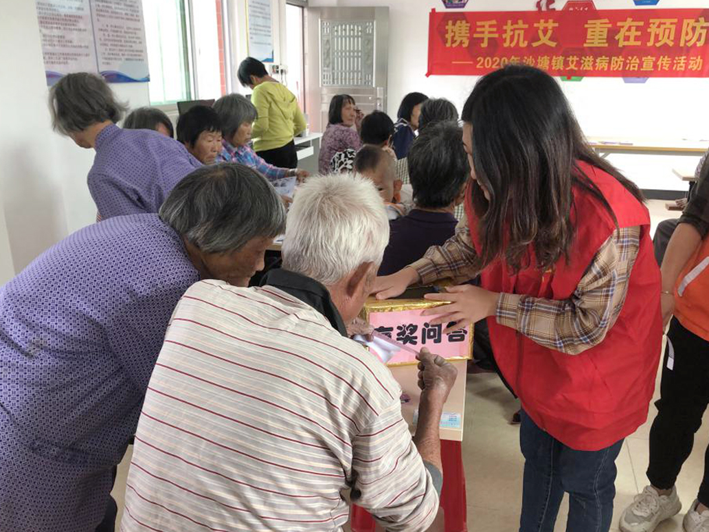 11月10日下午,冬日暖阳下的蓢畔党群服务中心热闹非常,沙塘镇携手惠群社工开展“携手抗艾 重在预防”宣传服务活动,通过发放健康知识手册、开展有奖问答等健康互动小游戏、现场测量血压等方式,吸引不少群众前来了解咨询。