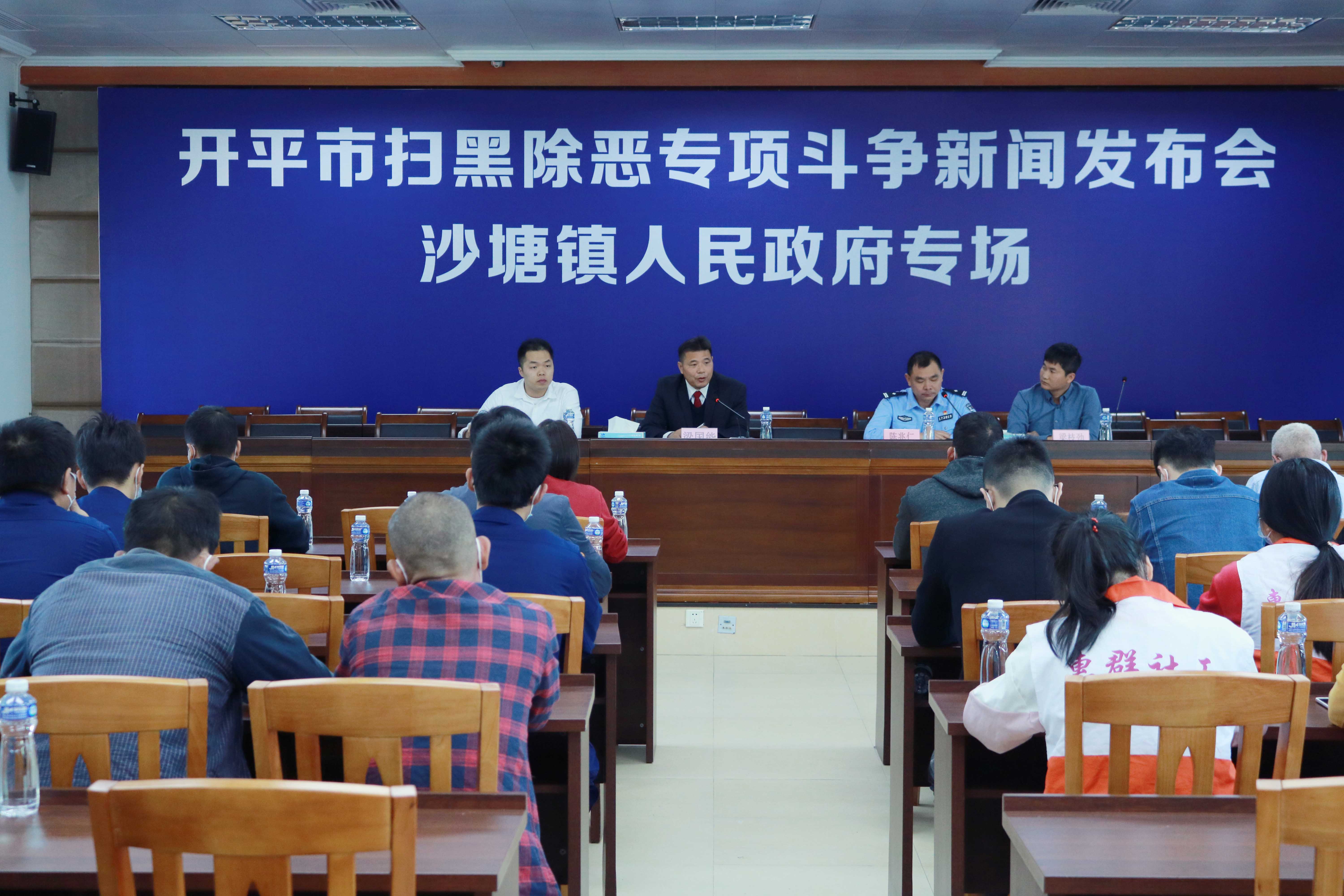 扫黑除恶专项斗争新闻发布会(沙塘镇专场)在沙塘镇公共服务中心会议室召开,展示沙塘镇三年以来扫黑除恶专项斗争工作成效,充分表示对推动常态化开展扫黑除恶专项斗争工作的坚定决心。
