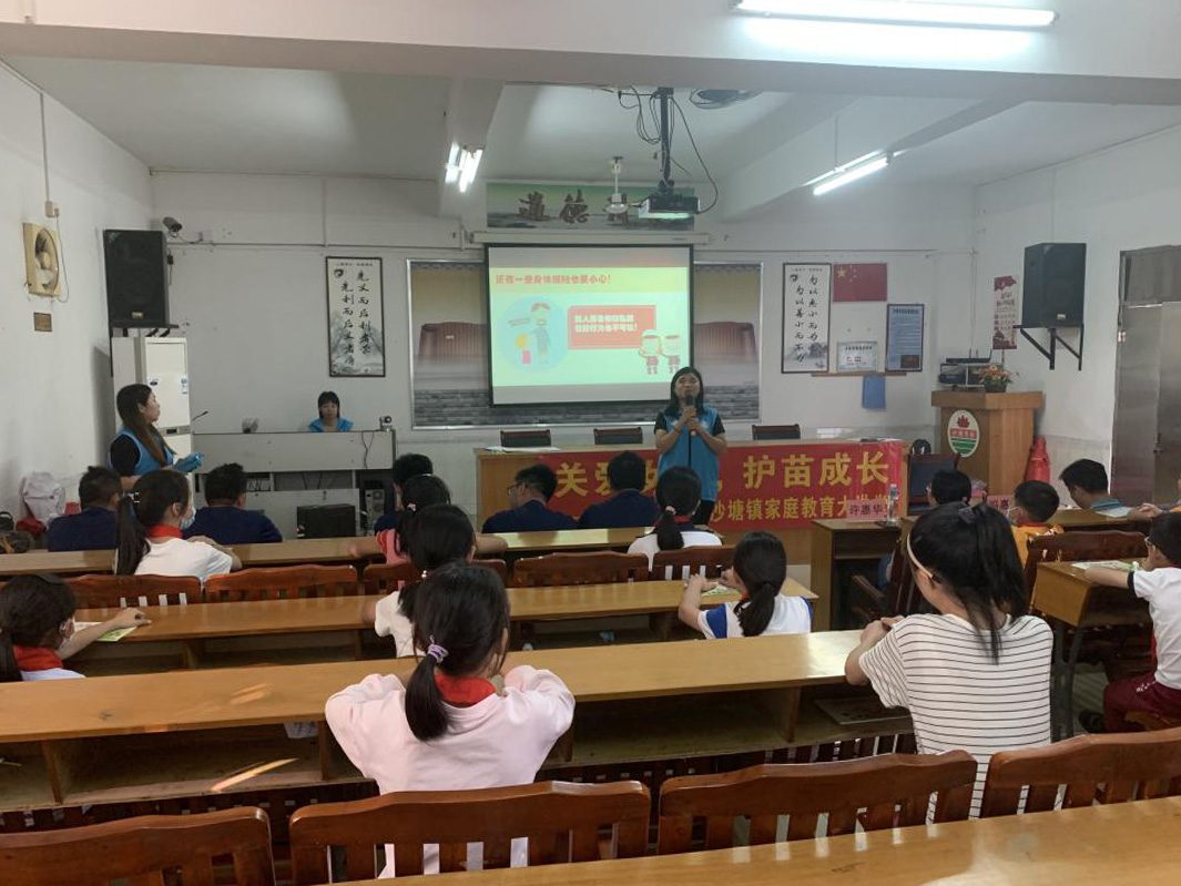 在沙塘学校专场,家庭教育讲师团讲师以“我来保护我自己”为讲座主题,活动采用授课+互动的模式,通过强意识、正观念,从“什么是隐私部位”“文明的身体接触”“不文明的身体接触”和“怎么保护自己”四方面为师生讲解保护儿童人身权益的常见误区,正确认识性教育的必要性,提高孩子对自身的保护意识,保障儿童身心健康。