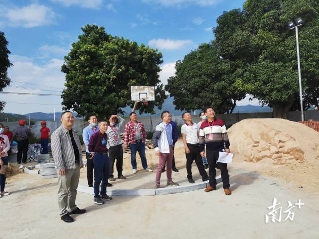 人大代表调研沙塘学校运动场建设。