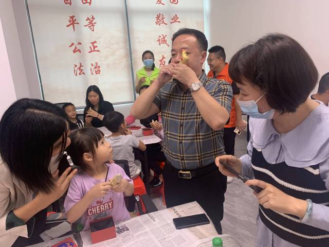 接着,是由江门市非物质文化遗产“镇濠泥鸡”制技艺传承人冯永勇老师开展“镇濠泥鸡”亲子手工现场教学。“镇濠泥鸡”在开平已有二百多年的制作历史,冯老师通过视频向大家讲解“镇濠泥鸡”的制作材料和过程,并亲自展示如何吹响泥鸡。冯老师让每位小学员和家长充分发挥想象力,共同为泥鸡着色涂油。通过参与制作,父母和孩子们充分体会到了非遗文化的魅力。