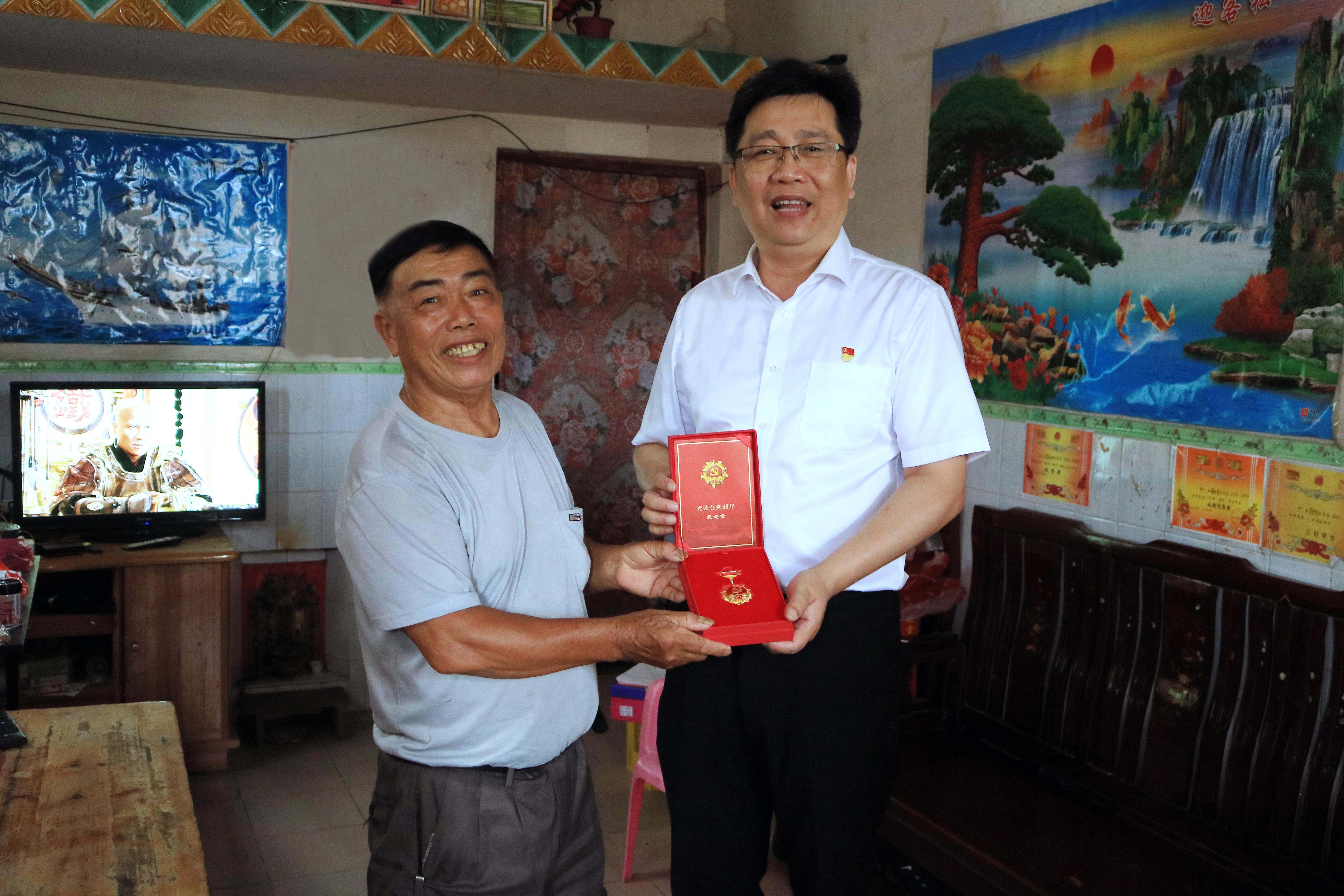 走访慰问过程中,关华俊与老党员、生活困难党员亲切交谈,详细了解他们的身体状况和家庭生活情况,认真倾听他们回顾爱党、护党、与党同行的事迹,感谢他们长期以来为党和国家的事业作出的积极贡献,并为入党50年以上的老党员颁发“光荣在党50年”纪念章,叮嘱他们保重身体,继续发挥余热,一如既往地关心支持镇党委、政府工作,为建设宜居宜业和美乡村建言献策、贡献力量。