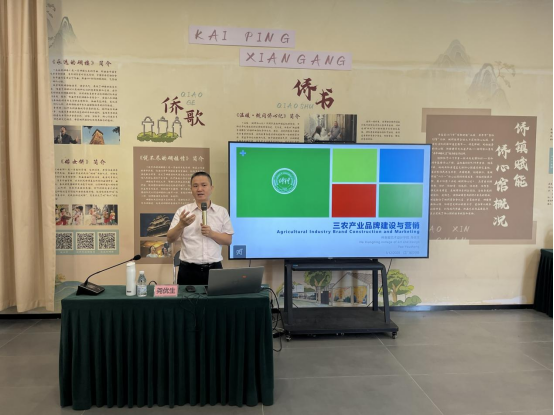 专题讲座上,尧优生围绕农业模式与生态设计的关系、品牌是什么、什么是品牌运营等方面进行了细致的讲解。通过理论框架解析与典型案例剖析相结合的方式,尧优生生动展示了“生态设计优化产业链、文化叙事激活品牌溢价、数字工具重构消费场景”的现代农业品牌升级方法论,这既为与会人员提供了品牌战略的理论工具,又为本土农业企业指明了品牌运营的实践路径,对提升蚬冈镇农业品牌溢价能力、构建现代农业产业体系具有重要指导价值。