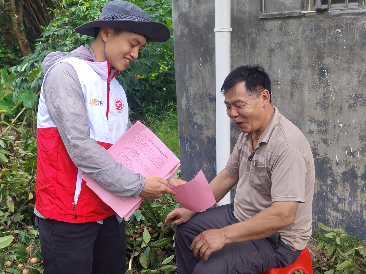 防控第一步,情况要摸清。驻坎田村选调生杨旭峰联合镇公服办设计调查问卷,内容涵盖村民近期外出史、蚊虫叮咬史、身体不适症状等关键信息,确保全面捕捉潜在风险点。选调生们带着调查问卷主动下沉,与各村“两委”干部紧密协作,组成多个联合工作组,顶着烈日与暑气,逐户叩开村民家门。汗水浸湿衣衫,脚步踏遍村巷,两天内走访30余个村小组,收集到详实的一手信息。驻长乐村选调生张穗玲化身“行走的数据库”,高效整合摸排信息,哪家积水多、哪户老人行动困难,她都了然于胸,为精准施策打下了坚实基础。新入职的选调生陈妍妍也快速融入调研工作,在老队员的“传帮带”下,认真记录每户信息,学习与村民沟通的技巧,她细致的笔记为信息汇总提供了有力补充。
