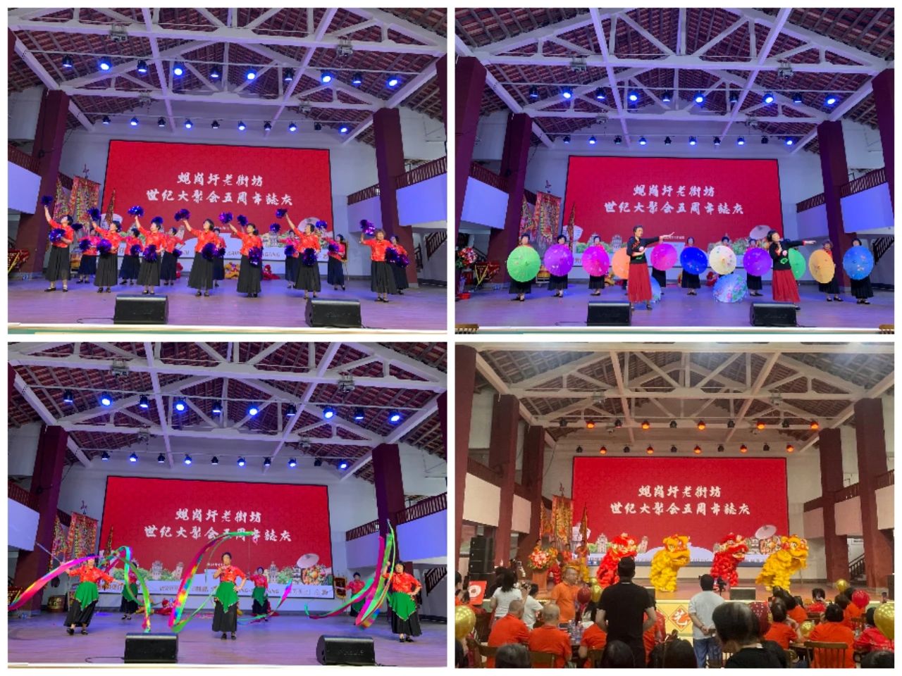 在街坊们的大力支持和大聚会筹委会的精心筹备下,精彩的醒狮表演、热情洋溢的大合唱、韵味独特的粤剧和彩带舞等节目在煲仔饭剧场轮番上阵,侨镇人文风情与煲仔饭美食的巧妙融合,不仅赢得了现场观众们的热烈掌声,而且还展现了蚬冈魅力侨镇的独特风采。