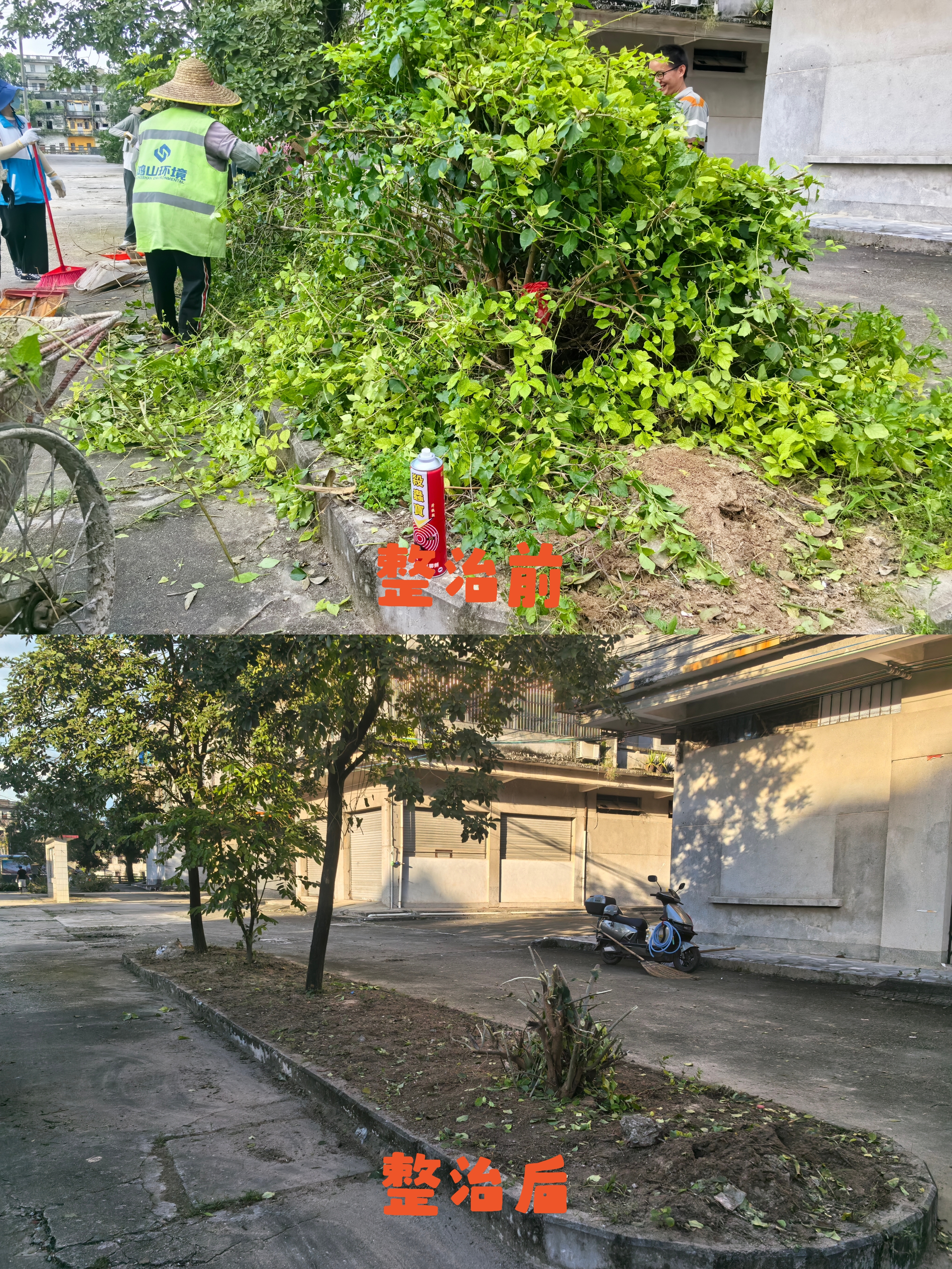行动中,镇、社区工作人员组成环境整治攻坚专项小组,聚焦蚬冈墟社区内的背街小巷、闲置地块等重点部位,实施“靶向清理”。针对蚊虫孳生的关键源头,攻坚小组排查积水点、生活垃圾、杂物堆放点,对废弃容器、闲置杂草等进行彻底清除与疏通,从根源上切断蚊虫繁殖路径同时,集中清理堆放的废旧家具、枯枝落叶、建筑废料等各类杂物,累计清运垃圾杂物超6吨,有效消除卫生死角与消防安全隐患。