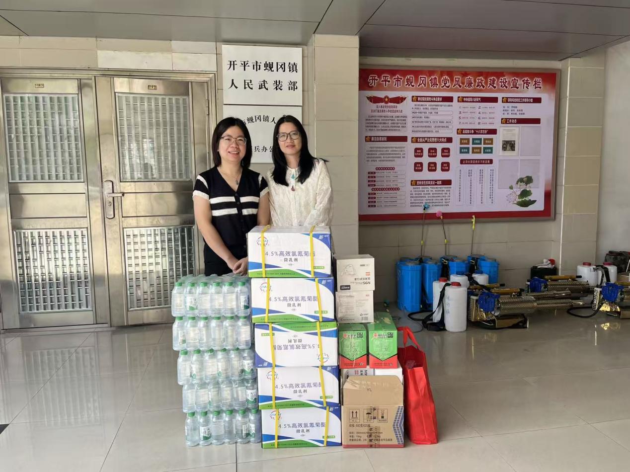 为支援全镇疫情防控工作,广东连发助剂厂有限公司、蚬冈商会等热心企业与团体率先行动,捐赠了价值2万余元的高效灭蚊药剂、智能蚊虫监测设备和防护口罩等物资。随后,邮政银行开平支行、海棠直播